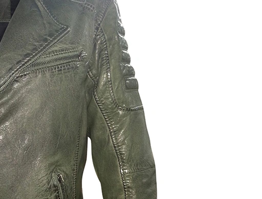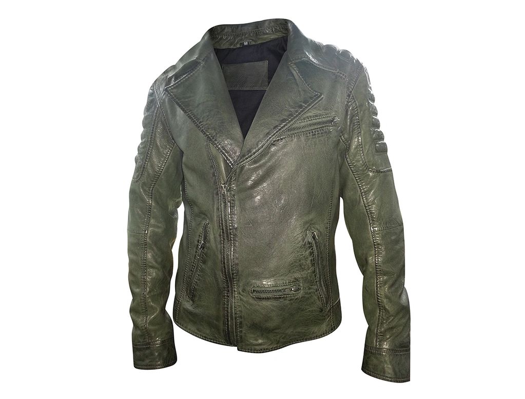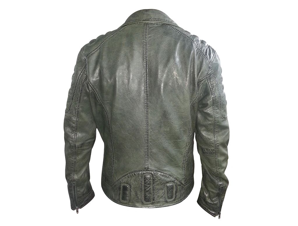 Best quality washed sheepskin leather shell and 100% polyester lining fabric designer greenish grey slim fit leather jackets for men.